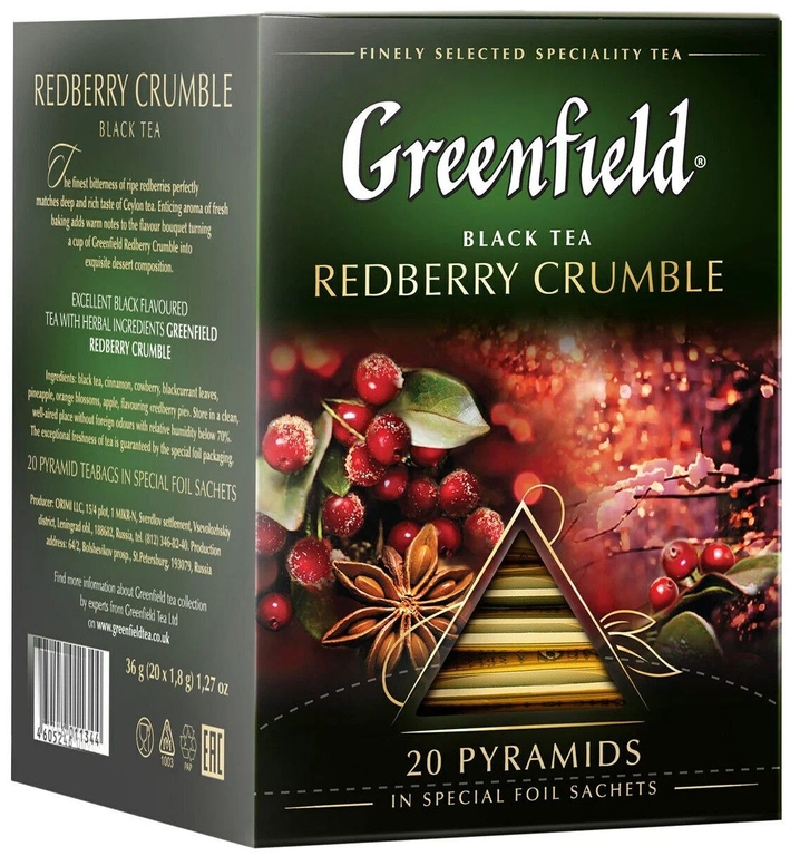 Отзывы к "Чай Гринфилд Рэдберри Крамбл 20*1,8г":