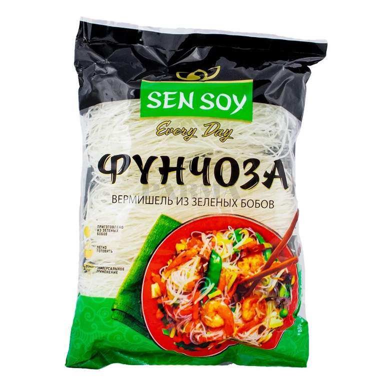 «Сэн Сой» Фунчоза — это прозрачная лапша из крахмала зелёных бобов с нежной текстурой и нейтральным вкусом. Её выбирают за: