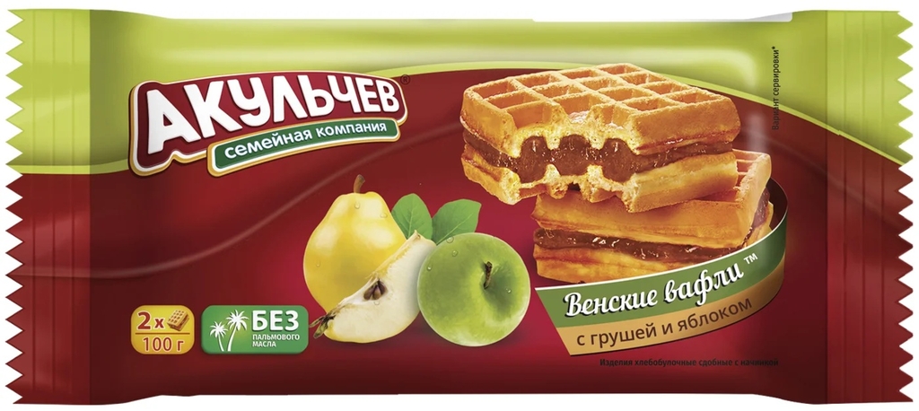 Вафли Акульчев Венские с грушей и яблоком 100г